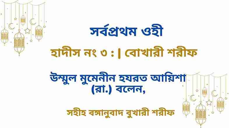 উম্মুল মুমেনীন হযরত আয়িশা (রা.) বলেন, প্রথমে যে ওহী আল্লাহর রাসূল-এর কাছে আসতো তা হলো ঘুমের জগতে তাঁর সত্য স্বপ্ন। তিনি যে স্বপ্নই দেখতেন তা ভোরের আলোর মতই স্পষ্ট হতো। এরপর তাঁর কাছে নির্জন জীবন-যাপন পসন্দনীয় হলো। এ কারণে তিনি ক্রমাগত তাঁর কানে পর্যন্ত নিজ পরিবার-পরিজনের কাছে না গিয়ে হেরা গুহায় নির্জন পরিবেশে আল্লাহর ইবাদাতে ধ্যনস্থ থাকতেন। আর এ লক্ষ্যে তিনি কিছু খাদ্য সাথে নিয়ে যেতেন। পরে তিনি খাদিজার (রা.) কাছে প্রত্যাবর্তন করে পুনরায় কয়েকদিনের জন্য কিছু খাদ্য সাথে নিয়ে যেতেন। এভাবে হেরা গুহায় অবস্থানের সময় তাঁর কাছে ওহী অবতীর্ণ হলো। জিবরাঈল ফিরিশতা সেখানে এসে তাঁকে বললেন, পড়ুন। আল্লাহর রাসূল এক বলেন, আমি বললাম, আমি তো পড়তে জানিনা। তিনি বলেন, ফিরিশতা তখন আমাকে জড়িয়ে ধরে অধিক শক্তিতে আলিঙ্গন করলেন যে, এতে আমি খুব কষ্ট অনুভব করলাম। তারপর ফিরিশতা আমাকে ছেড়ে দিয়ে বললেন, পড়ুন। আমি বললাম, আমি পড়তে জানি না। তখন তিনি দ্বিতীয়বার আমাকে জড়িলে ধরে আলিঙ্গন করলেন। এতে আমার খুব কষ্ট অনুভব হলো। তারপর আমাকে তিনি ছেড়ে দিয়ে পড়তে বললেন। আমি বললাম, আমি পড়তে জানি না। আল্লাহর রাসূল বলেন, ফিরিশতা তৃতীয়বার আমাকে জড়িয়ে ধরে কঠিনভাবে আলিঙ্গন করায় আমার অত্যন্ত কষ্ট হলো। এবার তিনি আমাকে ছেড়ে দিয়ে বললেন-